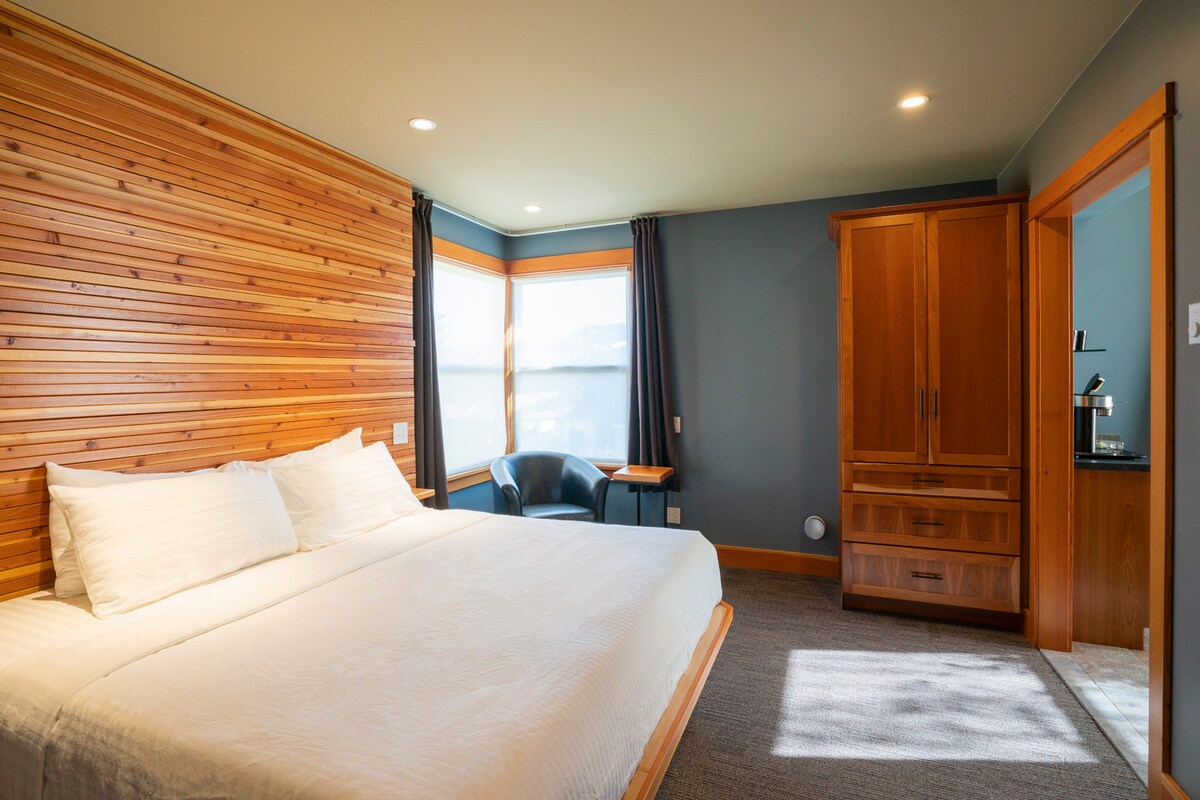 Pažnja posvećena detaljima i dizajnu opisuje ovaj apartman u prenoćištu Bijelog lososa. Apartman se nalazi unutar ovog butik hotela koji se nalazi u srcu klisure rijeke Kolumbije. Ima sve standardne sadržaje i kupatilo sa tuš kabinom; plus, imate luksuz sopstvene čajne kuhinje i kafića. Stavite obezbijeđeni kućni ogrtač, lezite na bračni krevet i pustite da se vaše brige otope. Imaćete i pristup zajedničkoj sobi i ogromnim baštama na otvorenom.