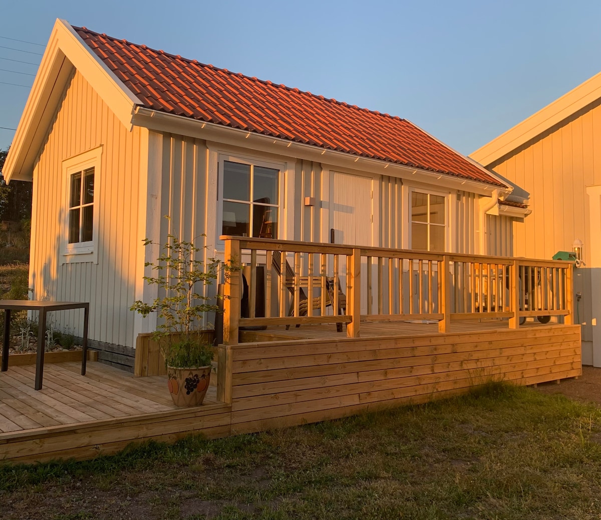 Kuća za goste u modernom i svežem stilu. Na moru na Grenseu, Vastervik. Kuća od oko 35 kvm ima spavaću sobu sa bračnim krevetom, dnevnu sobu sa udobnim kaučem na razvlačenje (120 cm) za 2 osobe i dobrom kuhinjom sa četiri mesta za sedenje, kupatilom sa veš mašinom. Kuća za goste pored mora na Grenseu, u blizini Vesterika. Kuća za goste je površine oko 35 kvm, sa jednom spavaćom sobom za 2 osobe i dnevnim boravkom sa sofom na razvlačenje (120 cm, 2 osobe). Lepa kuhinja sa 4 mesta za sedenje. Kupatilo sa tušem i veš mašinom.