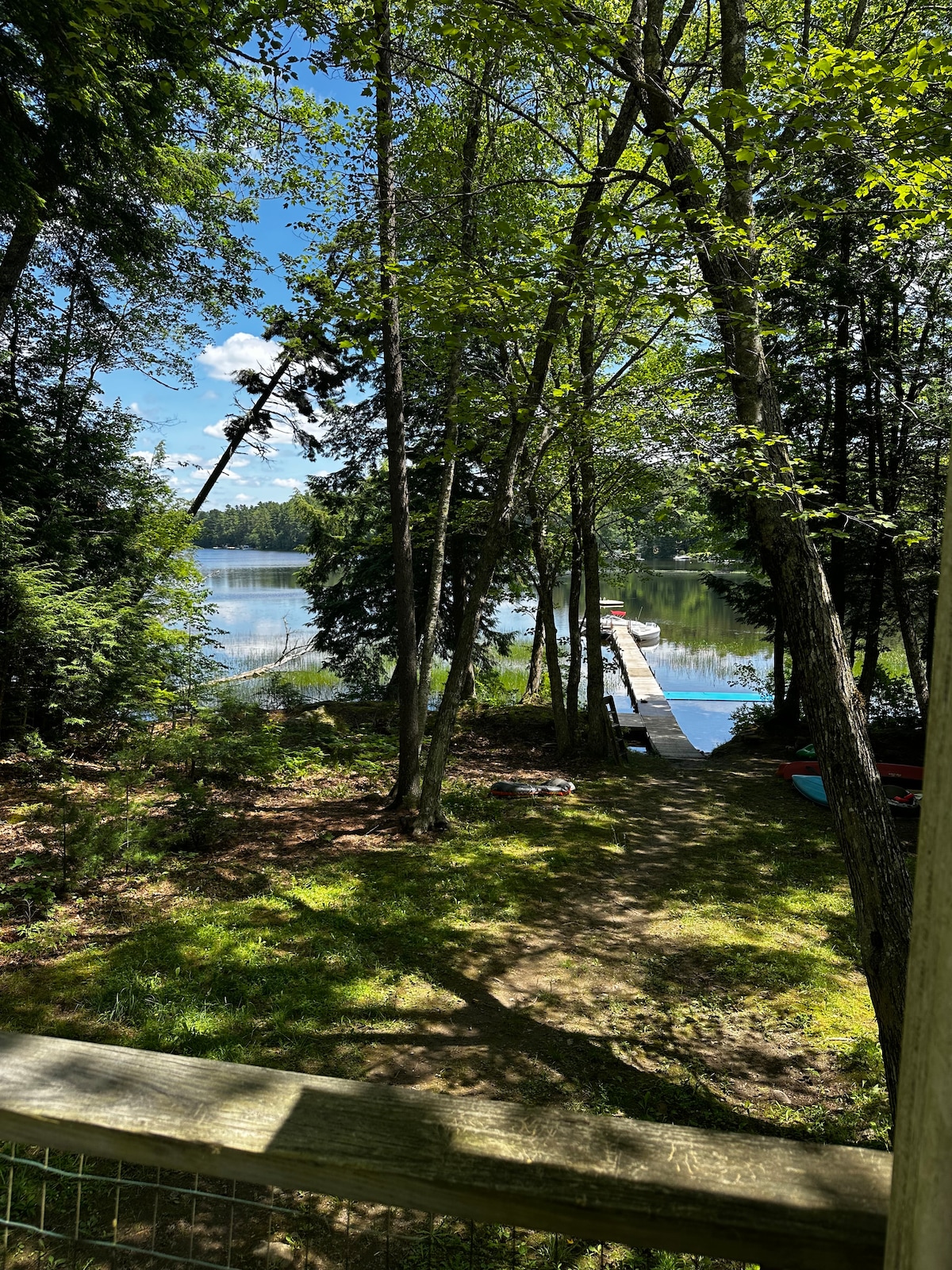 Udobna 2 kreveta, 1 kauč na razvlačenje, 2 spavaće sobe, brvnara sa 2 kupatila i pogledom na vodu/planine na jezeru Hobb 's Pond. Opustite se na doku, roštiljajte sa terase, kanu (1)/kajaci (2)/plivajte tokom dana i opustite se uz usluge strimovanja na pametnom TV-u noću. 5 minuta vožnje do Kamden snou bola za skijanje/snoubord tokom zime. Klizanje na jezeru. Iznajmite čamac tokom boravka. 13 minuta vožnje do centra Kamdena, gdje ćete naći odlične restorane i krstarenje jedrilicom u zalasku sunca. U neposrednoj blizini pešačkih staza!