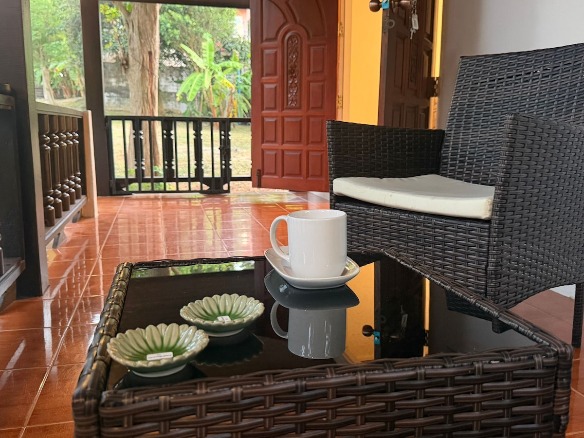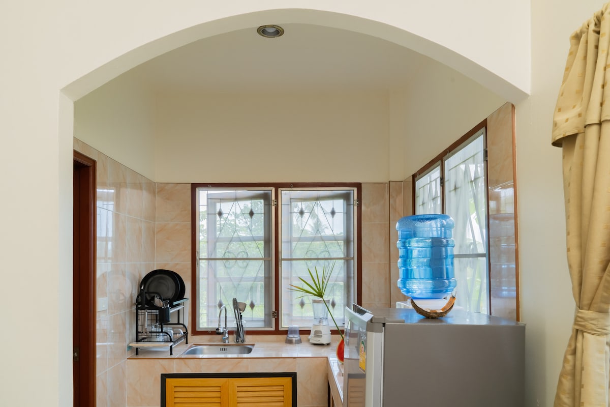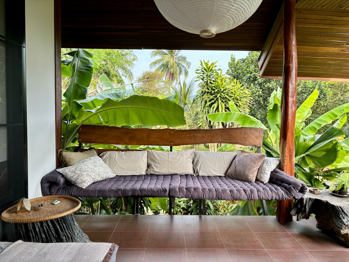 Ovo je udobna kuća za odmor koju je domaćin dizajnirao i izgradio s ljubavlju i pažnjom posvećenom detaljima. Materijali, boje, teksture i svetlost pažljivo se kombinuju kako bi se stvorila skladna, mirna atmosfera, milovana uvek prisutnim blagim povetarcem sa okeana. Kuća je okružena prirodom, ali samo 2 minuta vožnje do centra Srithanua (duhovnog područja). Kuća ima toplu vodu i brzu Wi-Fi vezu. Klima-uređaj namjerno nije dostupan i nije potreban zahvaljujući pametnom dizajnu.