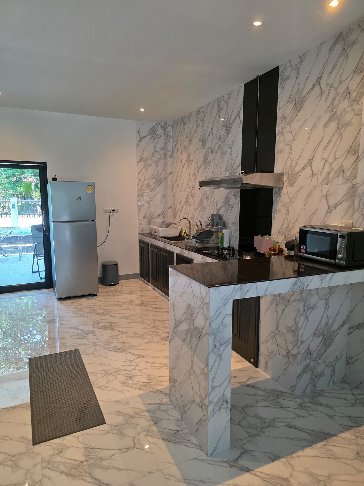 Zaboravite brige u ovom prostranom i mirnom mestu. 5 minuta od aerodroma Trang, 10 minuta od centra grada i 45 minuta od nacionalnog parka sa mnogo prelepih plaža. Iz marine možete otići brodom do mnogih prelijepih ostrva (Koh Kradan, Koh Lipong, Koh Lipe itd.). Ovo je odlično mjesto za opuštanje sa porodicom i prijateljima. Mogućnost 2 pomoćna ležaja u dnevnoj sobi, ukupno 6 osoba NAJMANJE 2 NOĆENJA Dugoročno iznajmljivanje je moguće na zahtev