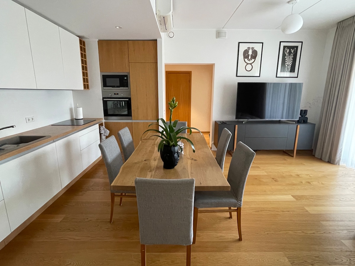 Nalazi se samo 3 minuta hoda od autobuske stanice i 3 minuta vožnje od aerodroma. Zgrada je arhitektonski biser Talina. Stan se nalazi na 12. spratu - fantastičan pogled na grad i Baltičko more. Potpuno opremljen i elegantan jednosoban stan: 2 odrasle osobe i 2 djece, supermarket je prekoputa. Italijanski i argentinski restorani udaljeni su 1 minut hoda. Stvorite uspomene u ovom jedinstvenom smještaju prikladnom za porodice. Za dodatne goste, kasnu odjavu itd., možda ćete morati da platite dodatne naknade.
