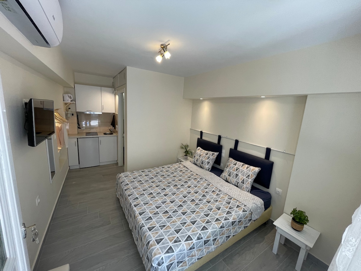 Irinino gnijezdo! Otkrijte ljepotu Krfa u gostoljubivom i renoviranom studiju u očaravajućem selu Pelekas. Studio je idealan za parove ili putnike koji putuju sami i žele miran odmor. Uživajte u panoramskom pogledu i miru sela dok ste na samo 5 minuta vožnje od dvije najljepše plaže u okolini. Iako je mali, prostor je pažljivo osmišljen i opremljen svime što vam je potrebno za udoban boravak. Idealan izbor za miran odmor.