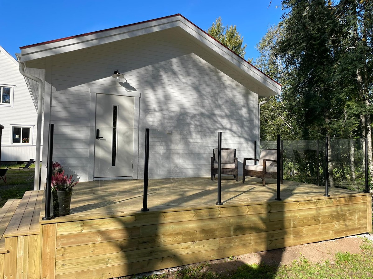 Experience the perfect blend of modern comfort and wild beauty at our secluded cabin tucked 10 km deep into the forest. Surrounded by dense woodland, this off-grid retreat offers a peaceful escape for those looking to disconnect and recharge. Relax on the spacious deck, soak in the hot tub while taking in panoramic views of nature or unwind in the sauna. Explore nearby hiking trails, and if you're lucky, you might spot moose, lynx, bears, or a variety of smaller forest animals and birds.