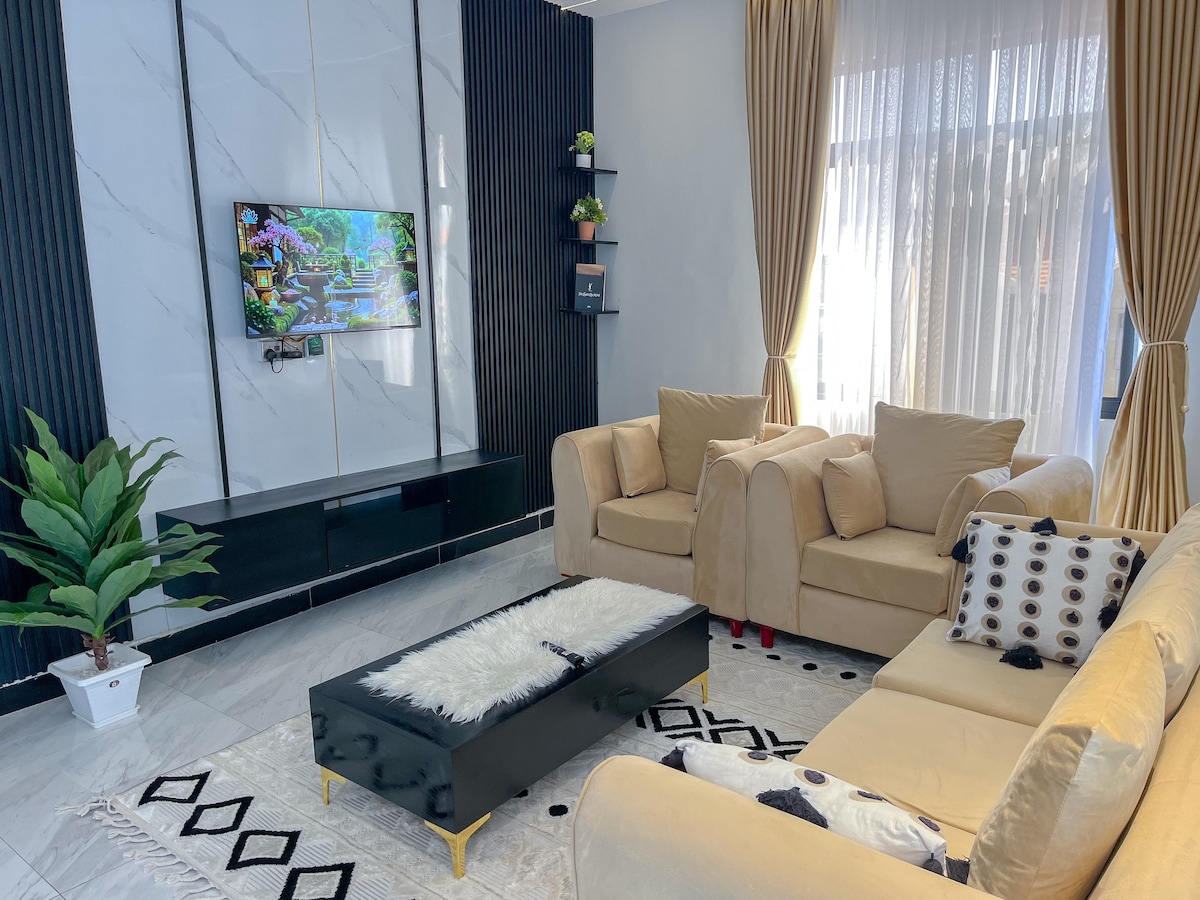 Miran luksuzni smeštaj na Kololo Hil Drajvu. Ovaj udoban, elegantan stan je dizajniran za odmor i udobnost, sa potpuno opremljenom kuhinjom i mirnim, domaćim ugođajem. Samo 5 minuta hoda do tržnog centra Acacia, ali dovoljno tiho da se zaista opustite. Prevoz sa aerodroma je dostupan po ceni od 150.000 UGX.