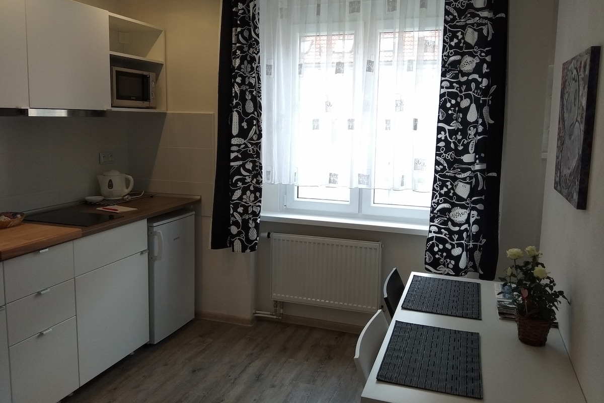 Sunny attic apartment in a quiet part of the city near the center and the forest. The bedroom offers a double bed with a size of 2x2m. There is a sofa in the living room, which can be expanded to a size of 190x150 cm and allows two more people to sleep. In the living room there is a kitchen with stove, sink, refrigerator, dishes. The apartment has wifi and two televisions. The bathroom has a small wooden sauna for max. 2 people. The toilet is separate. You are in the center in 5 minutes on foot.