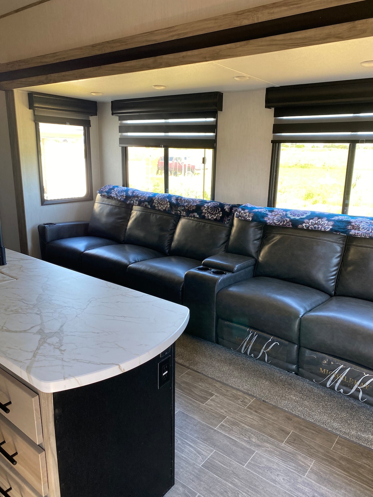 A home away from home! Our fifth wheel gives you the luxuries of a high end hotel but the peacefulness of being outside in nature. Comfortable beds, reclining chairs, fireplace for ambiance and warmth, and the ability to shower in your own shower instead of community showers!