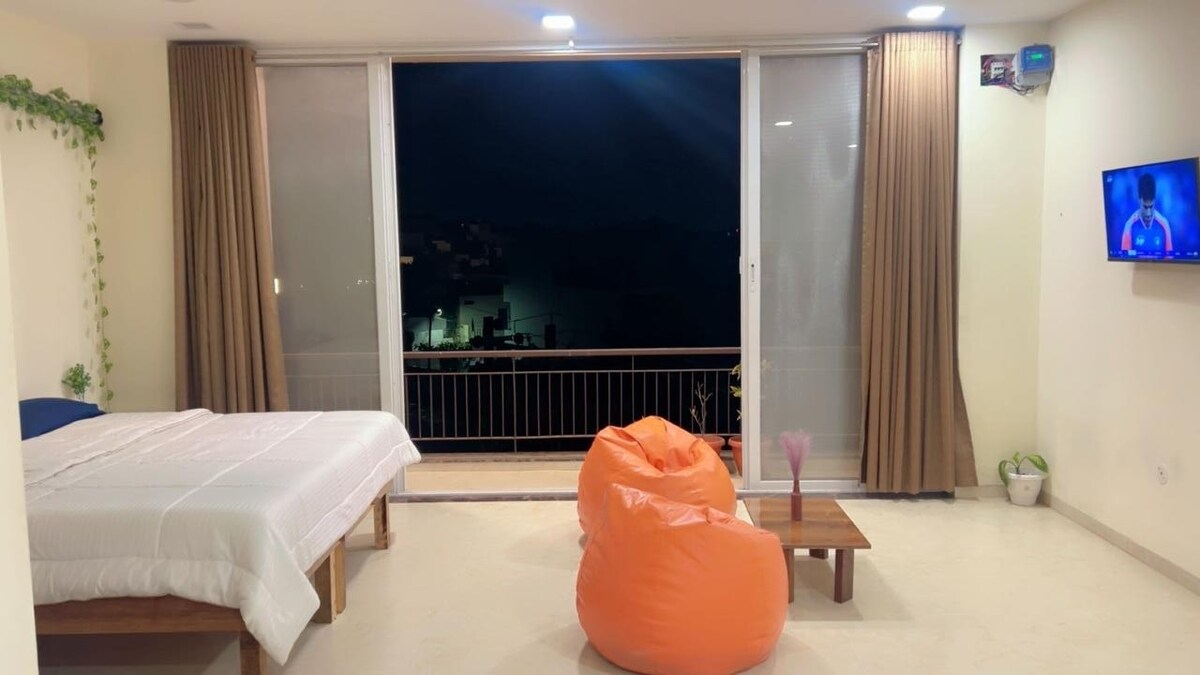 Doživite savršen spoj udobnosti i praktičnosti u našem elegantnom studiju u Saket Nagaru. Samo nekoliko minuta hoda od popularnih kafića kao što su Café Palette i The Neighbourhood Café, naš smještaj je idealan za putnike koji putuju sami, parove i profesionalce. Uživajte u modernim sadržajima, brzom Wi-Fi mreži i prijatnom ambijentu u kojem se osjećate kao kod kuće.