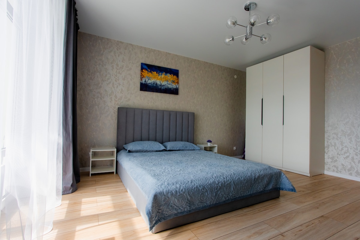 Jednosobni studio apartman u centru grada sa svežim popravkama i novim nameštajem. Nalazi se u novoj zgradi izgrađenoj 2020. godine, sa japanskim liftom. U dvorištu se nalazi igralište i parking. U blizini: šetalište, tržni centar, tržni centar, centralni park, prodavnice, kafići. Postoji sve što vam treba za udoban boravak: boller, posuđe, posuđe, nove uređaje, higijenske potrepštine, Wi-Fi, satelitsku televiziju, pametni TV, TV 60 dijagonale. Pružamo sve dokumente o plaćanju i prijavljivanju.