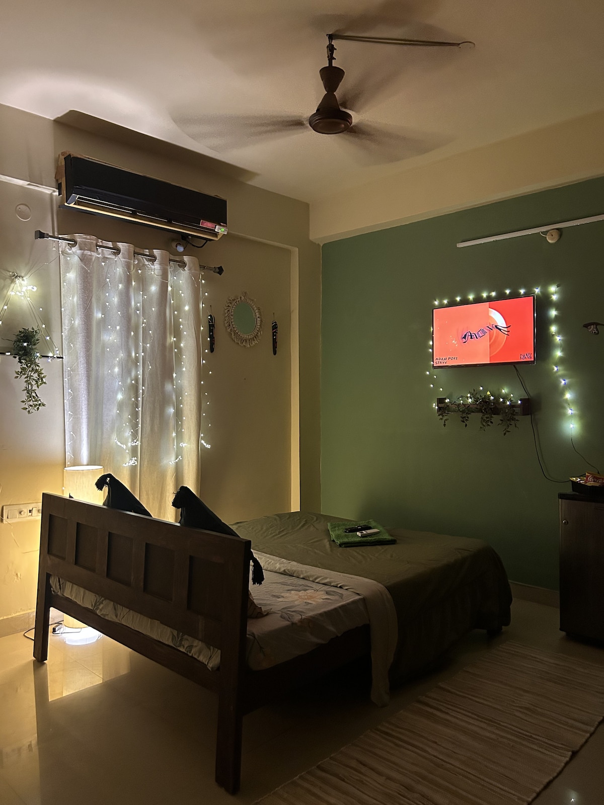 Welcome to Ivy Apartment by Red Olive — a spacious 3BHK apartment in the heart of Hitech City, Hyderabad, with Google and TCS literally next door. Spanning 3,100 sq ft with 3 fully air-conditioned bedrooms, 3 attached bathrooms, a dedicated study room, balcony overlooking Epark TCS, 65-inch Smart TV, fully equipped kitchen, smart lock check-in, and high-speed WiFi. Comfortably accommodates up to 6 guests.