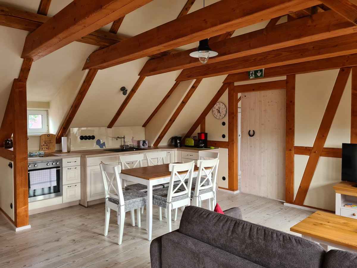 Naš mali stan se nalazi na ruralnoj lokaciji. Šetajući, možete doći do Kottmara i Spreequelle za 45 minuta. Okolnost možete istražiti i biciklom. Odmorite se i opustite u ovom okruženju. Stan je svježe namješten i nalazi se na prvom spratu u staroj kući. Ulaz vodi kroz zajednički hodnik. Stepenice su malo strme. Tu je i bašta u kojoj se možete opustiti i posmatrati piliće.