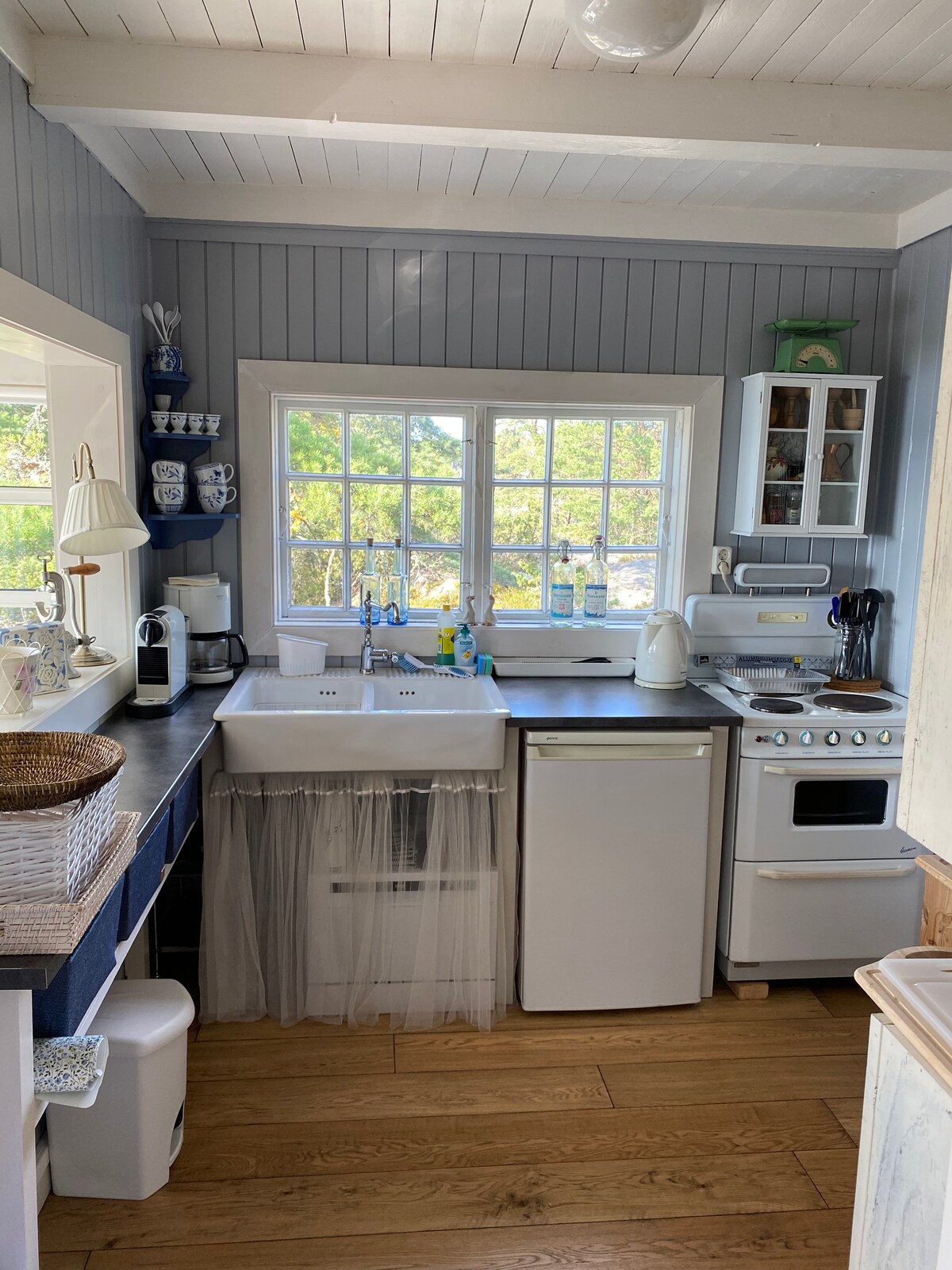 Uživajte u životu u vikendici sa sopstvenim grebenom i pristaništem. Predivan pogled i velika terasa sa električnim roštiljem. Sunce od jutra do večeri. Kajak i mali čamac dostupni na zahtev. 3 spavaće sobe sa 7 kreveta. Kupatilo sa đakuzijem/tuš kabinom i veš mašinom. Potpuno opremljena kuhinja. Prelepa parcela u prirodi 40 metara od mora