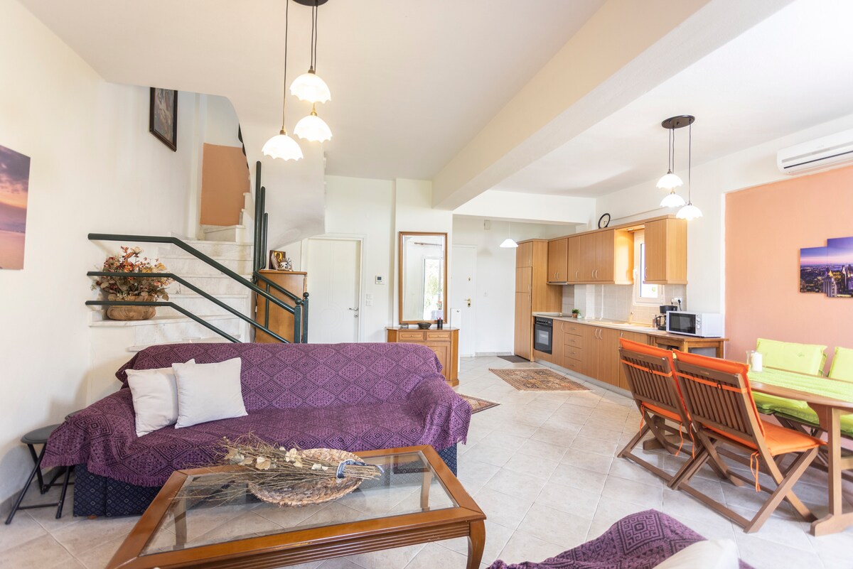To je tri prodavnice maisonette na prednjoj strani kompleksa sa predivnim pogledom na more i šumu.Plaža je udaljena samo 300 metara, a selo Kriopigi je udaljeno samo 900 metara.Savršeno mesto za letnji i zimski odmor pogodan za parove,porodice i grupe prijatelja.