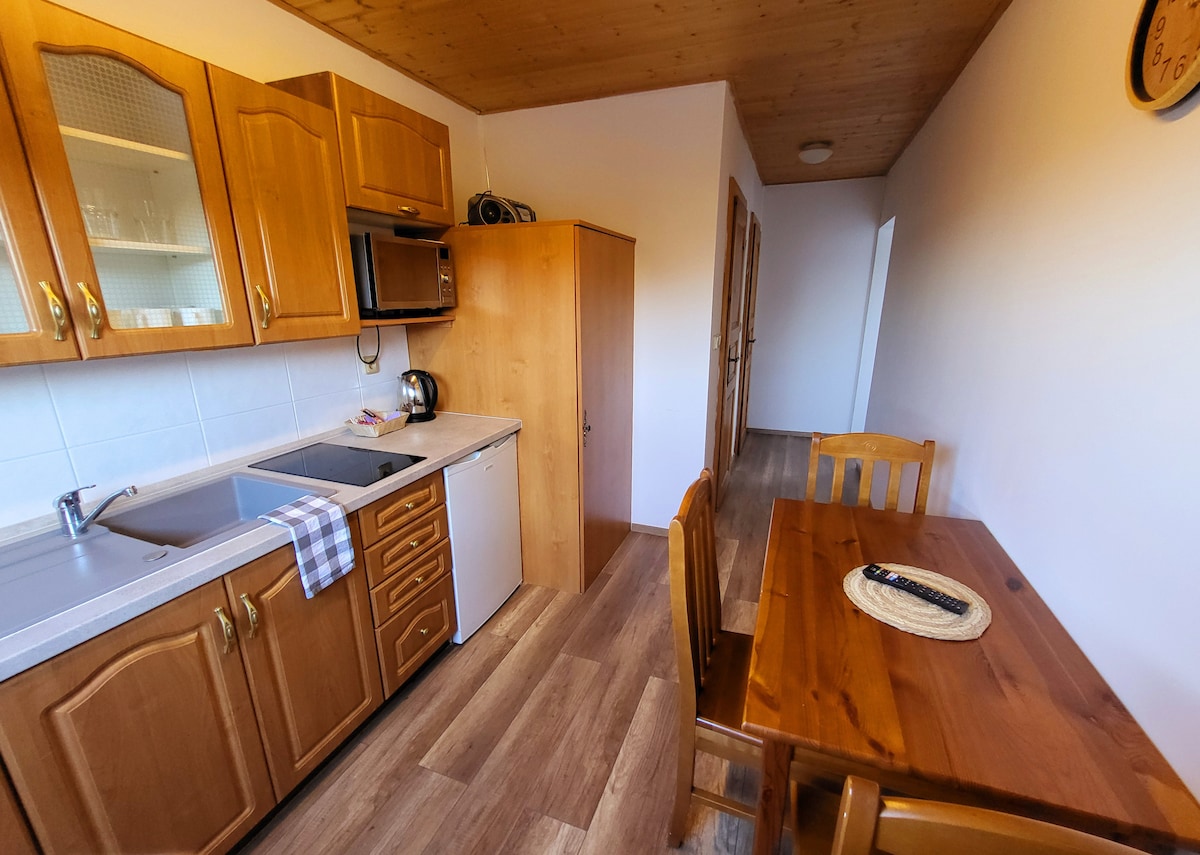 Otkrijte naše udobno utočište Luhacovice, nedaleko od spa centra. Uživajte u pogledu koji oduzima dah s naše prostrane terase, savršene za jutarnju kafu ili večernja vina. Ovaj elegantni stan nudi potpuno opremljenu kuhinju, udoban životni prostor i sadržaje kao što su Wi-Fi i pametni TV. Idealno za parove ili male porodice koje traže spoj opuštanja i avanture u srcu slikovitog spa grada.
