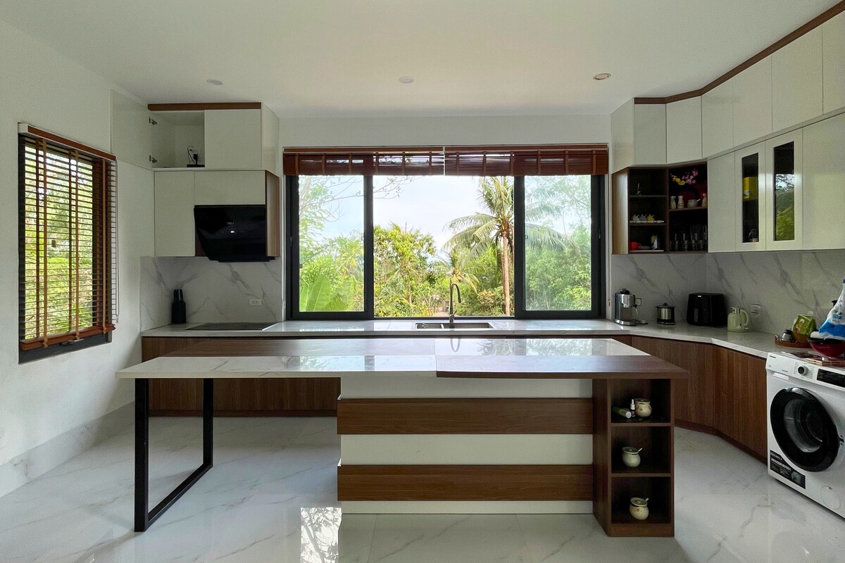 Privatna vila s tropskom baštom u blizini plaže Uživajte u mirnom boravku u ovoj privatnoj vili sa tropskom baštom u Fu Koku. Okružena palmama i bujnim zelenilom, vila ima prirodni bazen bez hemikalija, spoljni prostor za objedovanje i roštilj, kao i miran prostor za rad sa brzom Wi-Fi mrežom i pogledom na baštu. Kamene staze vode kroz prostrani vrt, stvarajući opuštajuću ostrvsku atmosferu. Ovo utočište u prirodi, koje se nalazi na samo nekoliko minuta hoda od plaže, savršeno je za parove, porodice i one koji rade na daljinu.