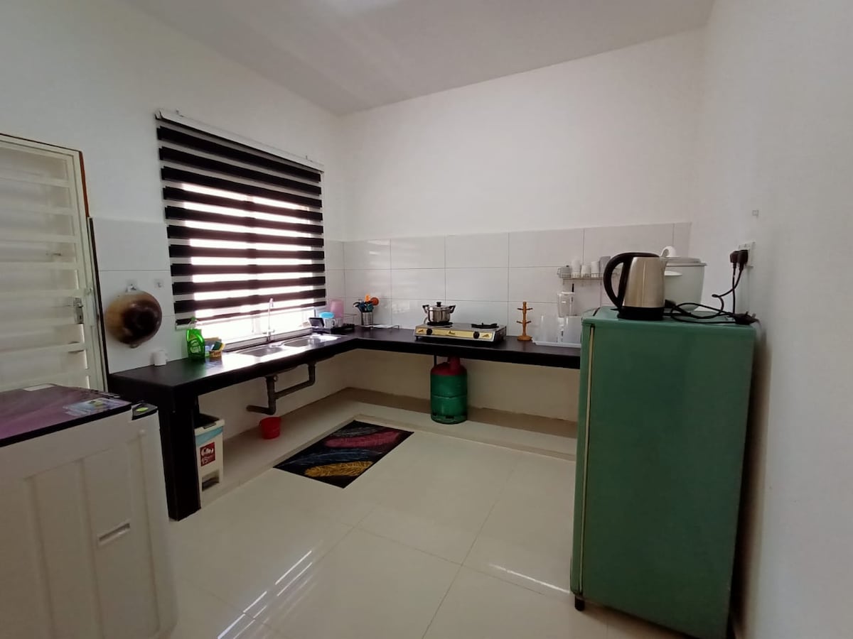 QHomestay @ Taman Keladan Impian, Temerloh. # 2 spratna kuća sa 6 spavaćih soba i 5 kupatila koja su pogodna za porodice i grupe prijatelja za okupljanje # Potrebno je samo 3 minuta do aerodroma na trgu, 5 minuta do Gobang Majua, 10 minuta vožnje do grada i 20 minuta do bolnice (HOSHAS) # Peškiri sa sapunom i šamponom za telo, peglom , mikrotalasnom rernom, čajnikom i osnovnim kuhinjskim priborom # U blizini pijace, praonice veša, džamije # Nalazi se u novom stambenom području, tako da je mesto tiho i mirno.