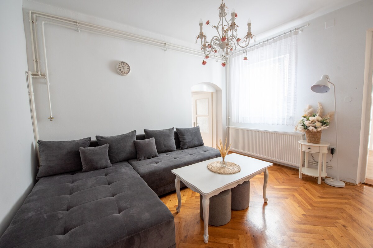 Vaša porodica će biti blizu svega kada boravite u Apartmanu H8 koji se nalazi u samom centru Bjelovara. Potpuno renoviran krajem 2021. godine, dizajniran da obezbedi maksimalnu udobnost. Nameštaj i oprema su pažljivo odabrani kako biste se osećali kao u vrhunskom hotelu, a istovremeno udobno kao u svom domu. Apartman ima TV sa Android sistemom i pristup internetu. Lokacija je odlična i sve je u blizini, na par minuta hoda do centra grada.