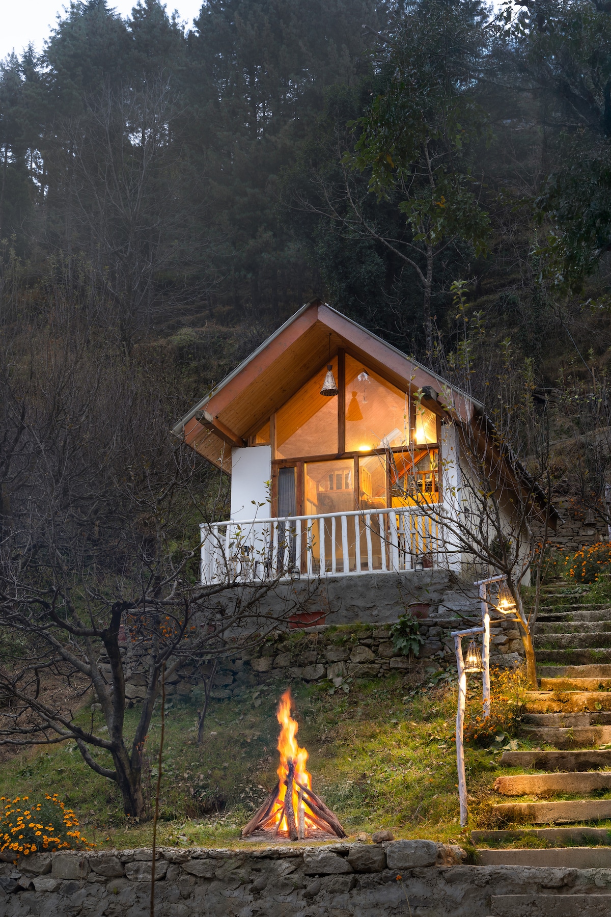 Jedna slatka seoska kućica sa 1 spavaćom sobom i potpuno opremljenom kuhinjom i kupatilom. Okružen drvećem jabuka, ovo je savršeno odredište za ljude koji vole da provode vreme na otvorenom sa prirodom. Ni predaleko, niti preblizu pijaci, ovaj objekat se nalazi 10 kilometara prije Manalija u mirnom selu zvanom 17 milja. Ali da biste došli do ovog mesta, morate da prođete kroz malu avanturu. 100 malih stepenica sa drvećem svuda oko njih da biste došli do imanja.