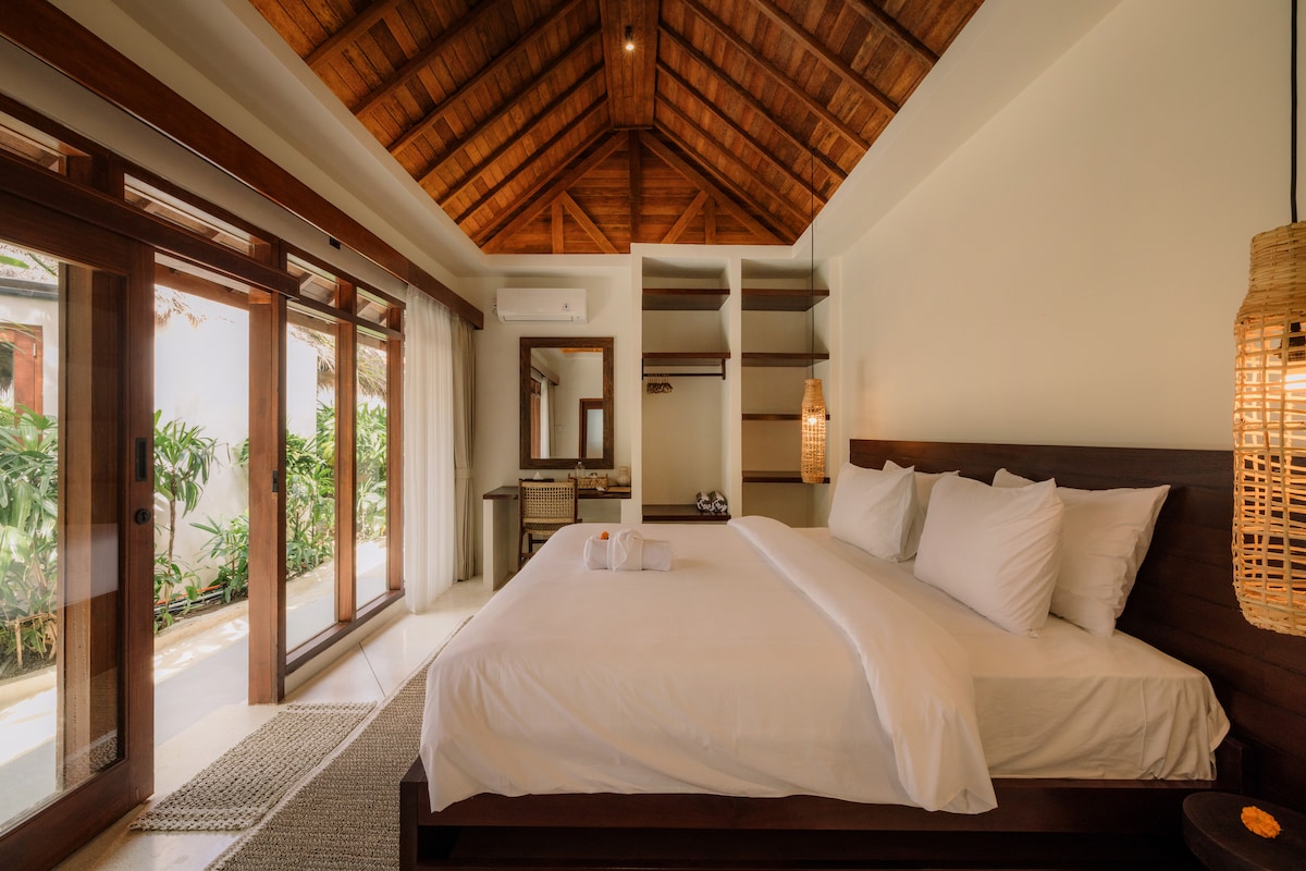 Jedinstvena spavaća soba s pogledom na bazen u Sanur Villagesu