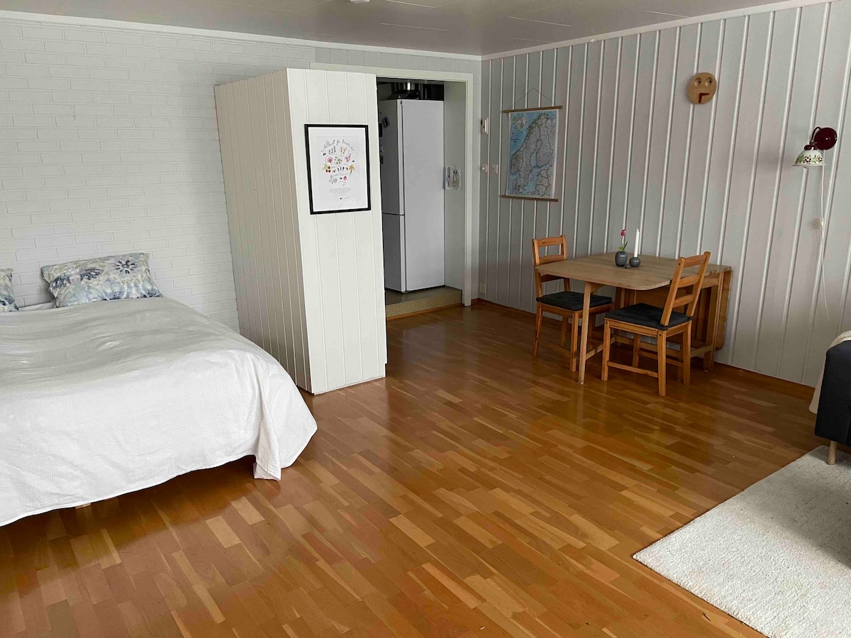 Imamo kontejner za otpremu na našem imanju i ima oko 20 m2. Ima 2 kreveta za jednu osobu, malu kuhinju i kupatilo. Možemo da obezbijedimo dušek na podu ako je potrebno. Ne morate da čistite prije odjave, mi ćemo to uraditi😊. Mjesto se nalazi na 5 minuta hoda od centra Rerosa. Možete vidjeti crkvu s našeg imanja. Želimo da vam pomognemo da maksimalno iskoristite svoje putovanje u Roros. Radujemo se što ćemo se upoznati i nadamo se da ćete uživati u boravku u našem smještaju!