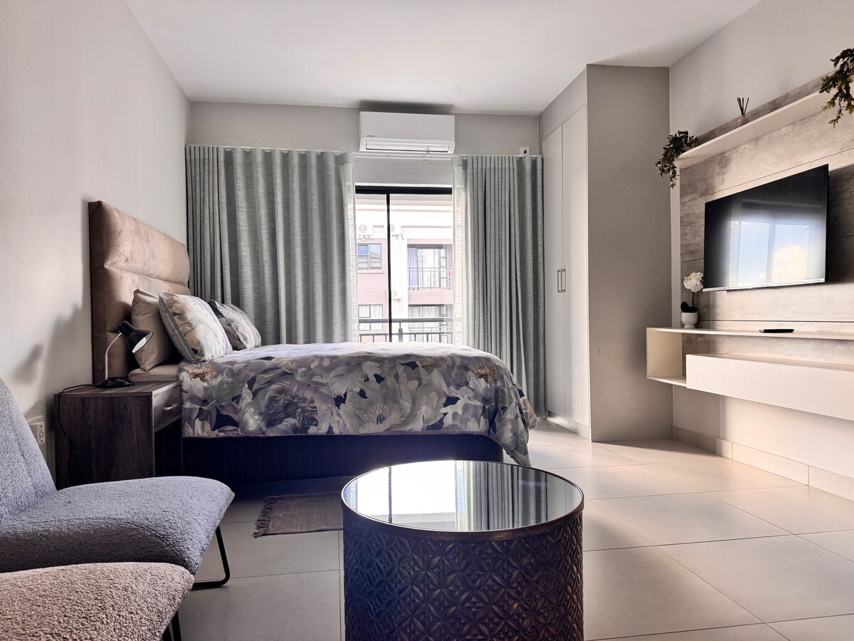 Moderan jednosoban stan nudi mirno utočište u srcu Kgale View-a, smještenog u mirnom i sigurnom objektu Motswedi Place Apartments. Spavaća soba je opremljena visokokvalitetnim bračnim krevetom od pjene, kombinacijom mašine za pranje i sušenje veša, lijepo postavljenim TV-om koji gostima omogućava da uživaju u filmskom doživljaju uz DStv (ograničene kanale) i već dostupnim Netflix-om. Gosti takođe mogu da uživaju u besplatnom Wi-Fi-ju, potpuno opremljenoj kuhinji, klima-uređaju i 24-satnom obezbjeđenju.