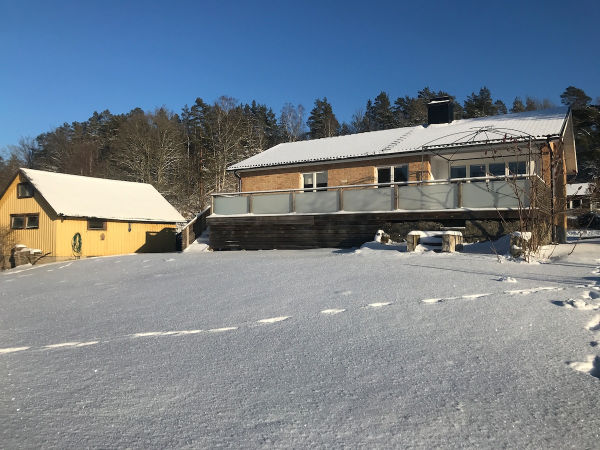 Sjöstugan - naš biser tik uz obalu jezera! Sopstvena kuća sa potkrovljem za spavanje, kuhinjom, prelepom velikom sobom sa kaminom i pogledom na jezero. Sauna na drva sa kupanjem u jezeru odmah pored. Đakuzi na pristaništu - uvek topao. Pristanište za kupanje 5 metara od vrata. Pristup čamcu. Ako želite da kupite kartu za pecanje, kontaktirajte domaćina. Drva za peć i saunu su uključena. Dvorište je ograđeno sve do jezera i naš pas bigl Vide je često napolju. On je dobar. Posteljina, peškiri i čišćenje su uključeni.