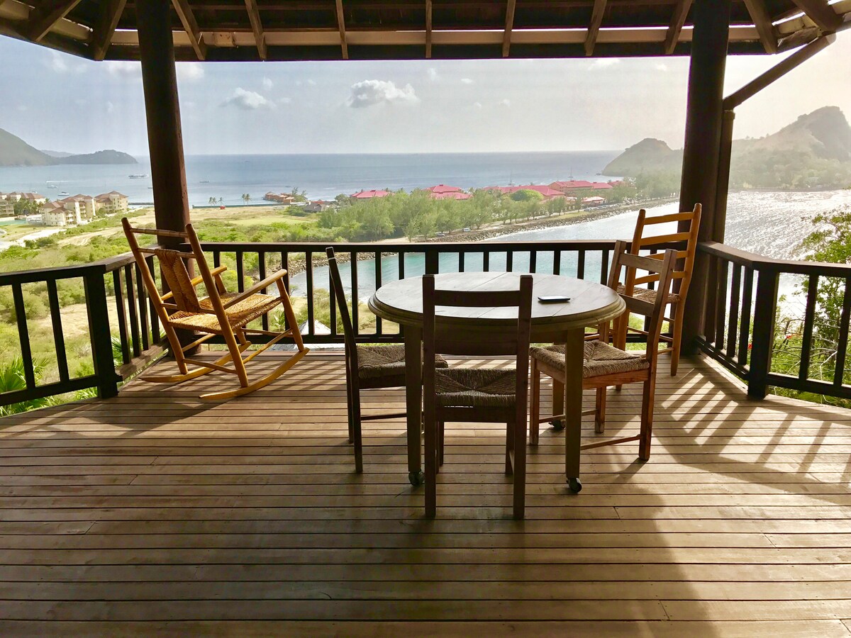 Jedan od 3 apartmana (pogledajte moj profil da biste vidjeli druge apartmane) u našoj porodičnoj kući, koja se nalazi na 4 tropska hektara zemljišta sa veličanstvenim pogledom na sjever i susjedno ostrvo Martinik. Uživajte u najnevjerovatnijim zalascima sunca na prostranom dvorištu. Uprkos miru, objekat se idealno nalazi na manje od 10 minuta vožnje od grada i nekih plaža. Dva minuta hoda do našeg prilaza i već ste na autobuskoj liniji. U krugu od 10 minuta hoda nalaze se pekara, mini-market, barovi, restorani i kombiji sa hranom.