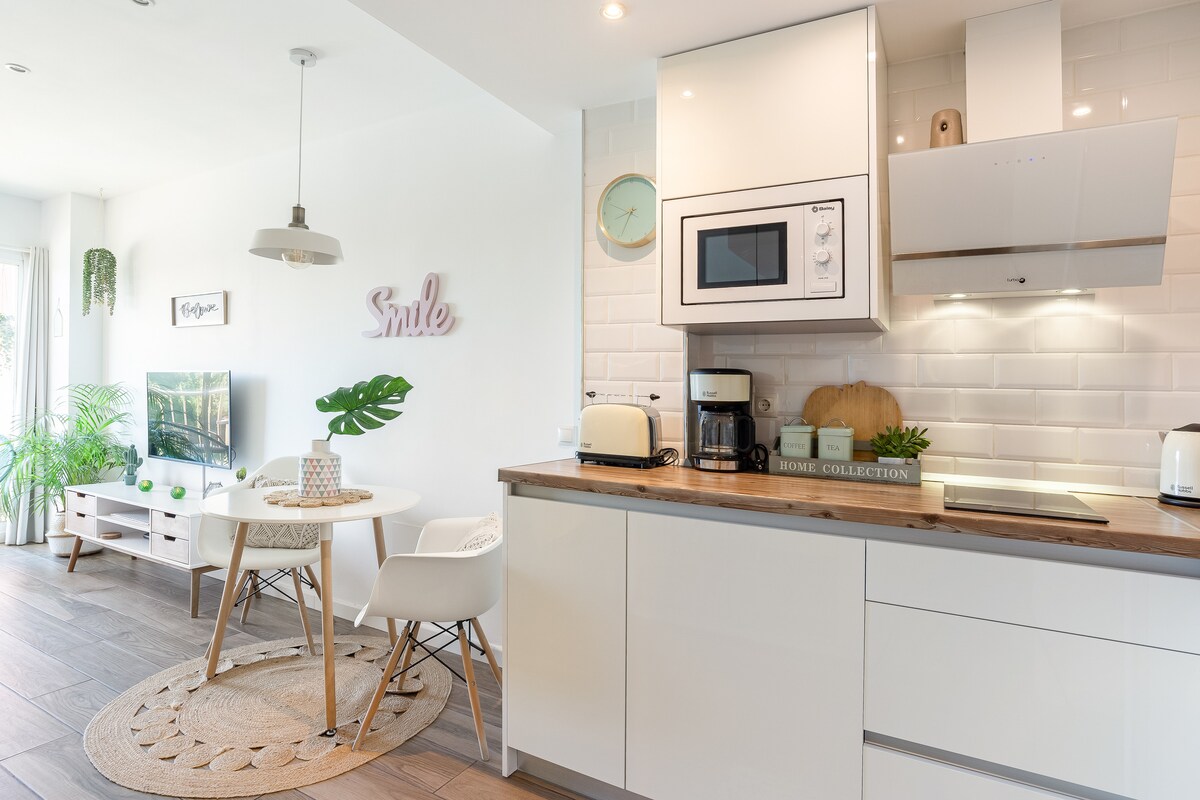 Lovely Studio, fully renovated with nice views to the pools . Very bright and sunny (afternoon sun). 1ST FLOOR. Only short walking distance to the beach (10 min on foot) and close to La Paloma Park and the famous Bonanza Square, very popular for tourists. Arroyo de la miel center and commuter train is around 500 meters away (15 min on foot). La Marina are around 15 min on foot. The biggest pool is only open on summer. Important: All the Pools are closed now.