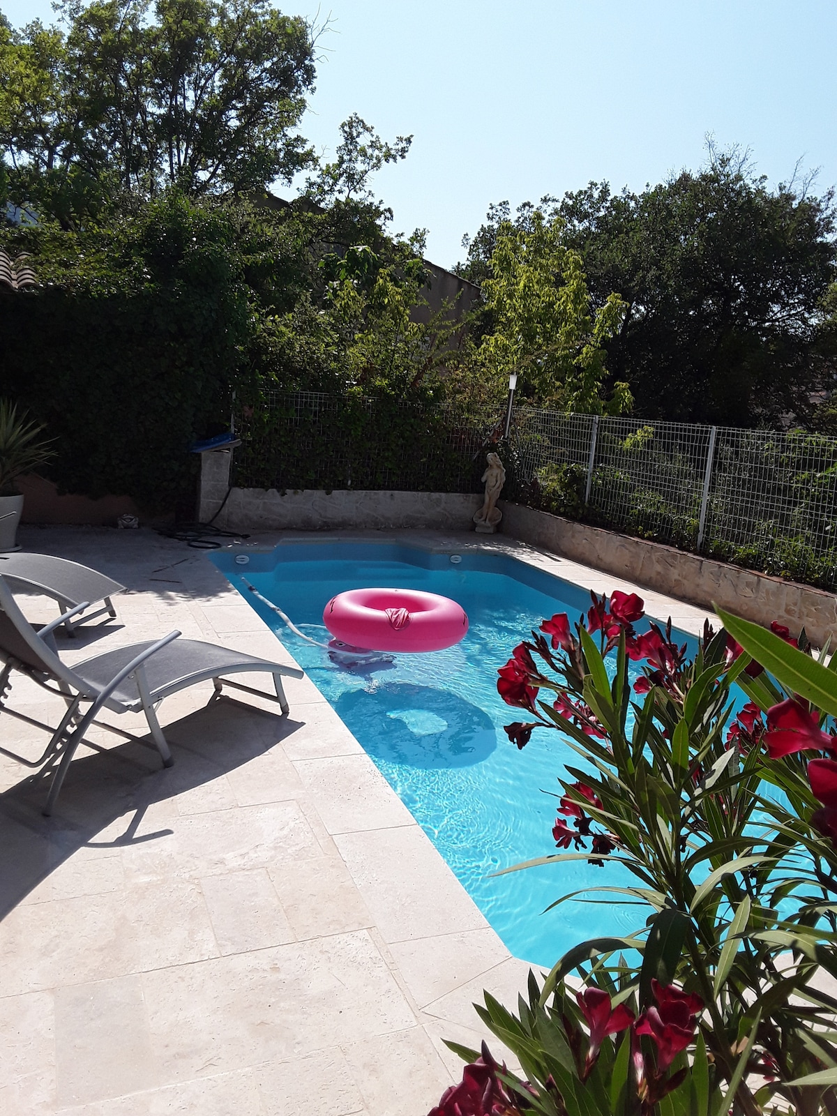 U srcu zelene Provanse, novi smeštaj sa 2 sobe, nezavisan , udoban(kuhinja / dnevni boravak,spavaća soba i kupatilo,WC, spoljna terasa sa roštiljem i ne previđenom) zatvorena električnom kapijom i skloništem za automobil. Smeštaj je opremljen mašinom za pranje sudova , mašinom za pranje veša i indukcionim tanjirima. Smeštaj je klimatizovan . Pool . Dočekaće vas Henri i Mari Mišel .