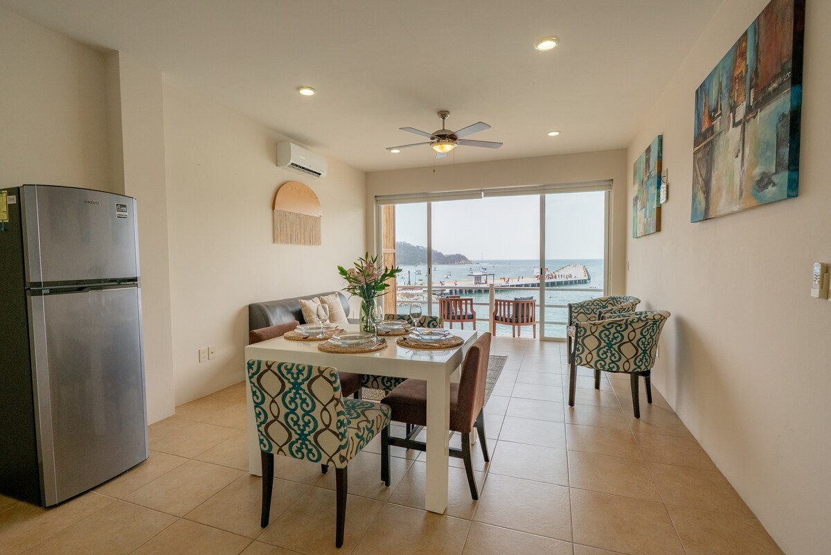🌊 Prekrasan stan od 100 m² okrenut ka privatnoj plaži. Dođite i opustite se u ovom nedavno renoviranom stanu, koji se nalazi odmah uz zaliv Tangolunda u Baijas de Huatulku. ✨Kapacitet za 3 osobe. Pristup svim hotelskim sadržajima 🎾 🏋️ 🏊 ☕️ 🍹 🥘 📍Nalazi se na brdu, tako da ima stepenica i staza okruženih prirodom za šetnju i uživanje u pejzažu. 🚘 Nema liftova, ali možete da zatražite vozilo za golf da vam pomogne prilikom prijave i odjave.