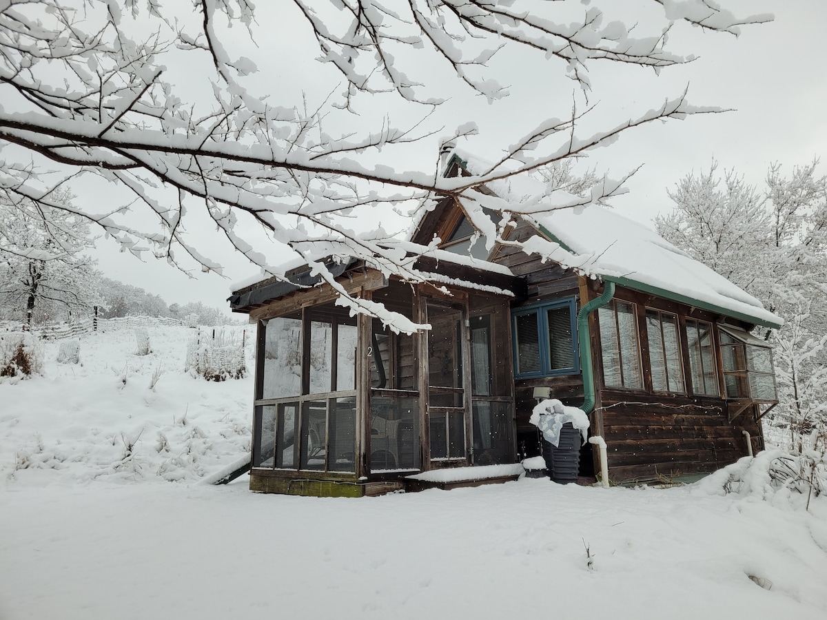 Uživajte u jednostavnom životu u ovoj brvnari smještenoj u srcu naše farme. Prošetajte objektom ili idite na kratku udaljenost do državnog parka Wildcat Mountain ili do rezervata Kickapoo Valley. Raj za planinare možete uživati i u svježim pekarskim proizvodima iz naše pekare od maja do oktobra ili prije narudžbe tokom cijele godine. Posteljina na 2 udobna kreveta, flaširana voda i voda za pranje, aparat za kafu, kuvalo za vodu, ognjište, roštilj na ugalj i priključak koji nije hemijski. Nema friga. Nema kućnih ljubimaca. LGBTQ je u vlasništvu i pod upravom. BIPOC je dobrodošao.