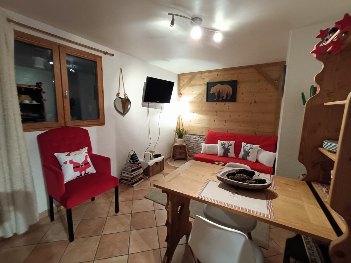 Na visinama Mutiersa, sunčana padina, otkrijte naš stan od 35 m2. Nalazi se u prizemlju naše kuće. Sastoji se od sledećeg: 1 nezavisni ulaz, 1 prostor za spavanje sa 2 x 200 cm, 1 kupatilo sa tuš kabinom, opremljena kuhinja otvorena za dnevnu sobu. Predivna terasa i malo parkirno mesto. Automobilom: 3 minuta od željezničke stanice Moutiers, na 10 minuta od odmarališta neveste les i 45 minuta od odmarališta Courchevel i Méribel.