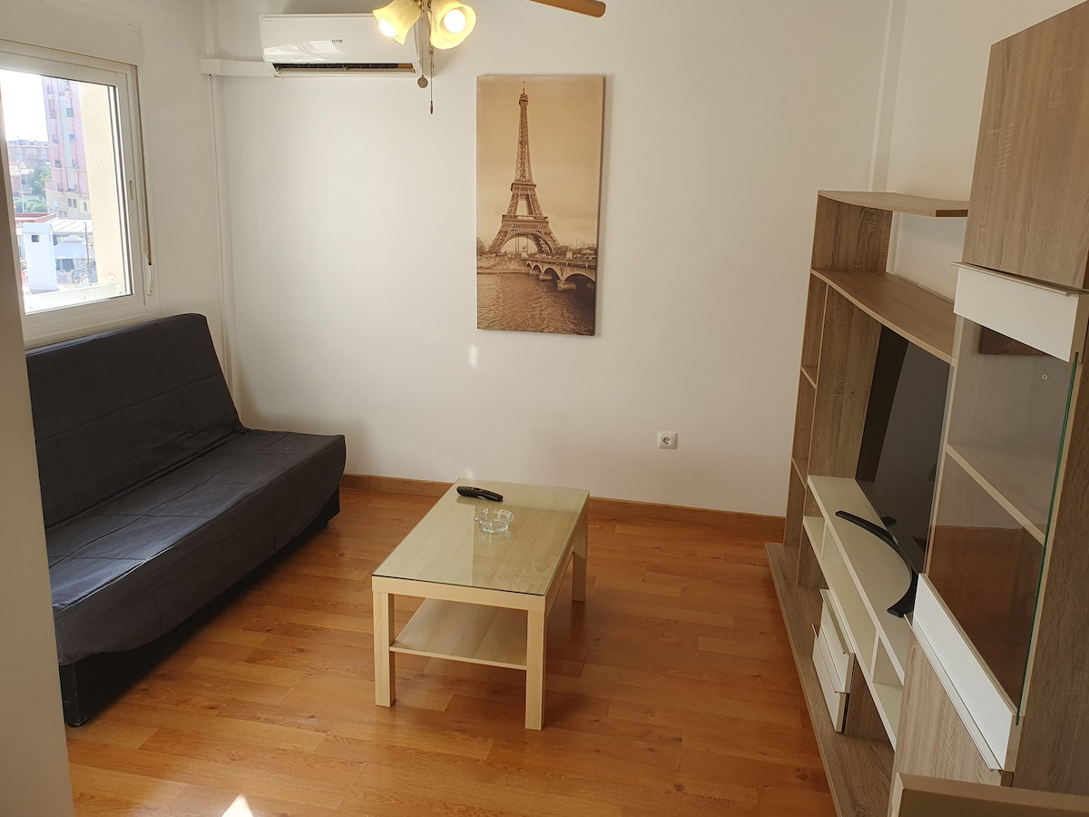 Modern and cozy Apto. en La Línea de la Concepción, Cádiz. con Aire Acondicionado in the daily room-kitchen and its only bedroom. Samo 500 metara od plaže, 1 km od istorijskog centra grada i samo 1,50km od Gibraltara. Idealno za 4 gosta u bračnom krevetu i na kauču u dnevnoj sobi. BESPLATAN Wi-Fi. Potpuno opremljena kuhinja. Moderna zgrada u mirnom dijelu grada. Nema problema sa besplatnim parkingom. Postoji supermarket i nekoliko prodavnica, ali ne i restorani.