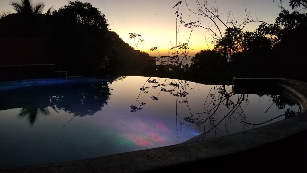 Uživajte u ljepoti La Manzanilje, okolne džungle i okeana u prelijepom stanu na krovu Hacijende Alegrije. Jedinica ima zajednički pristup velikom bazenu sa roštiljem na otvorenom, kuhinjom i palapom. Savršen odmor za jedan ili dva para. Sa Starlink internetom, najbržim u La Manzanilli, savršenom za digitalne nomade koji žele da pobjegnu od svega. Ako ste zainteresovani za iznajmljivanje dodatnog sprata imanja, posjetite: airbnb.com/h/entire-lamanzanilla-estatehacienda