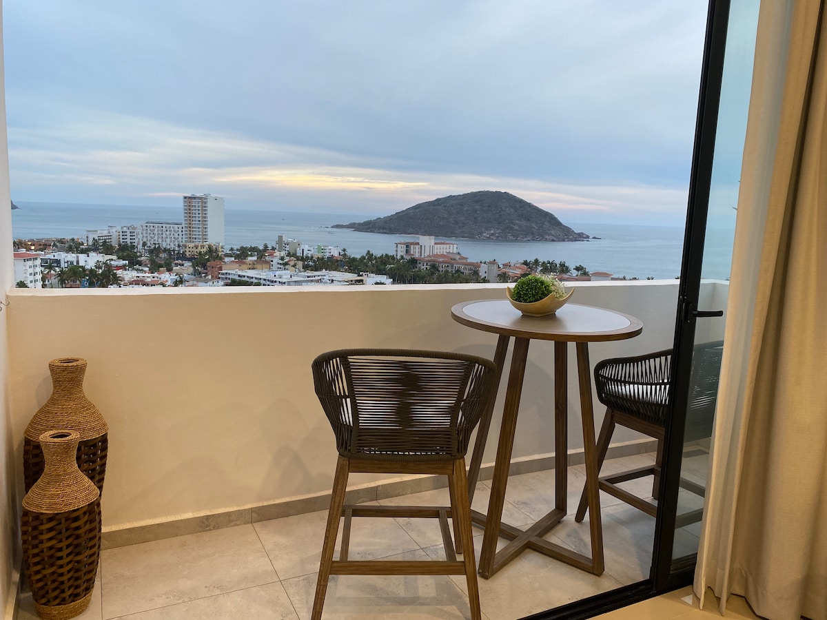 El condominio es muy seguro y cuenta con amplios espacios en todas sus áreas, ubicado justo frente a la playa, sobre el malecón (lugar donde se realiza el icónico carnaval); Al estar ubicado en un nivel Quince, se puede disfrutar de una hermosa vista y de los hermosos atardeceres que junto a las 3 islas nos brindan una experiencia inolvidable. La Playa ubicada al frente cuenta con palapas con variedad de mariscos, pescados y otras especialidades locales, así como refrescantes bebidas.