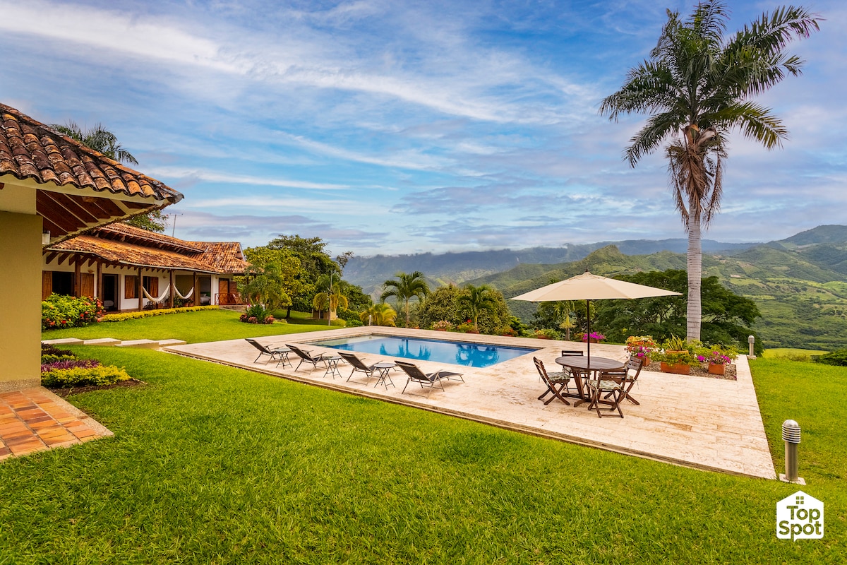 Linda kuća od 300 m2 na privatnom zemljištu od 3 fanegadosa sa nevjerovatnim pogledom na dolinu i planine. Ovaj objekat za 8 gostiju je veoma blizu Anapoime. Ovo je objekat isključivo za porodične grupe koje žele da se isključe i napune baterije usred prirode. Prelijepe bašte, velika terasa, Wi-Fi, roštilj, TV, stoni tenis, kuhinja i posteljina. Ne napuštajte putovanje nasumično. TopSpot® — 10 godina iskustva, povjerenja i srećnih boravaka u najboljim objektima u zemlji.