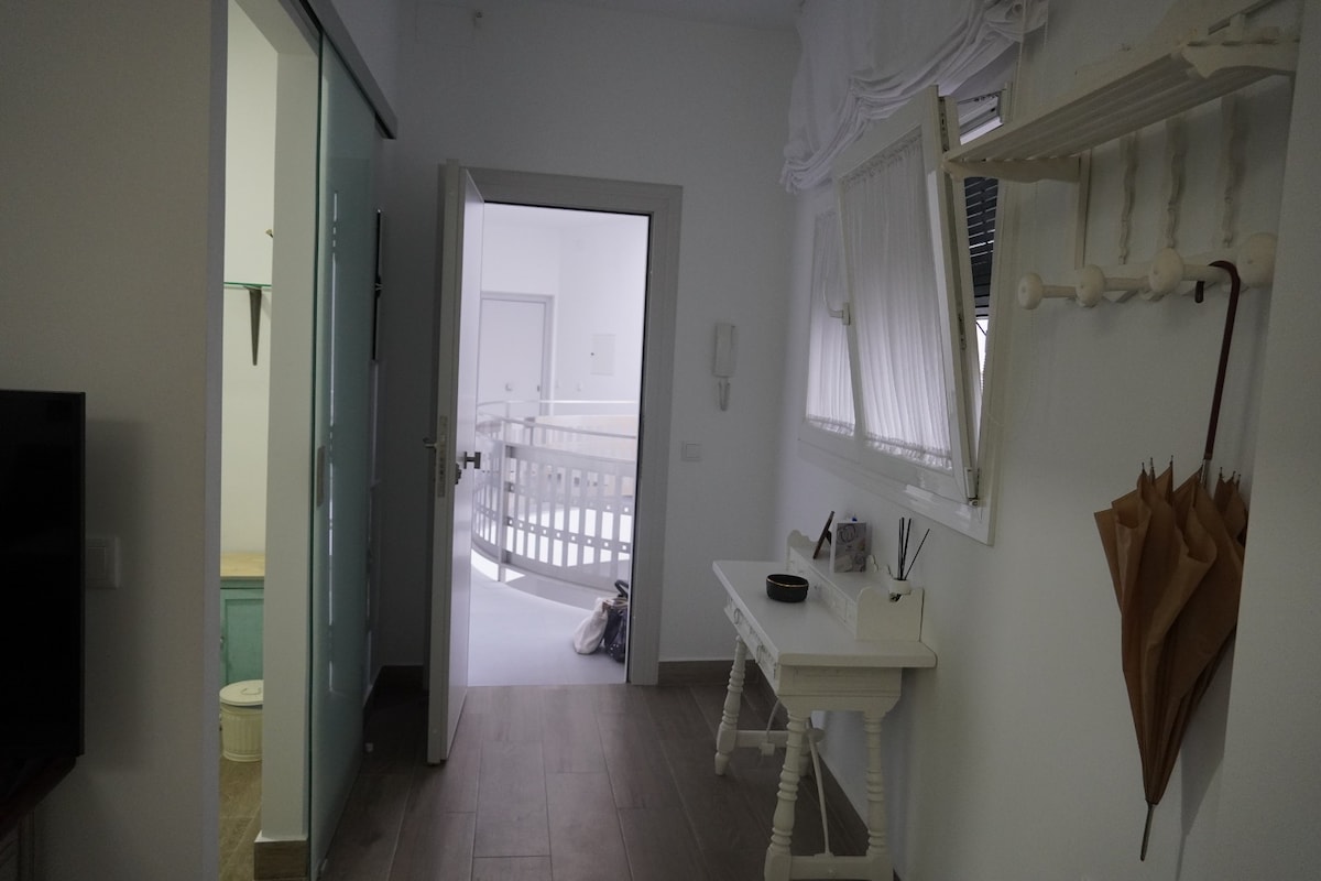 Ovaj prostrani i svijetli potkrovlje se nalazi na trećem spratu tipične kuće u Kordobi, uređenoj u romantičnom, ali mediteranskom stilu. Spavaća soba, sa krevetom dimenzija 150x200, integrisana je u dnevnu sobu koja ima veliki kauč na razvlačenje. Uživajte i opustite se na prostranoj terasi, sa predivnim pogledom na jednu od najpoznatijih ulica u gradu, punim drveća pomorandži, na pet minuta od džamije, u blizini čuvenog trga Plaza del Potro i Plaza de la Corredera.
