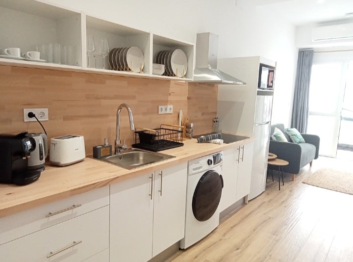 Savršeno za parove ili parove sa jednim ili dvoje djece. Ne preporučujemo za dva para ili 4 odrasle osobe jer su krevet i kauč na razvlačenje u istoj sobi! Za goste bez ili loših recenzija potreban je depozit od 200 € po dolasku koji treba vratiti nakon odjave ako nije došlo do štete. Sasvim autentična španska četvrt sa barovima i restoranima u kojima možete da probate lokalna jela, tapas i paellas. Apoteka, supermarket, autobus, metro i gradski bicikl udaljeni su svega 5 minuta hoda.