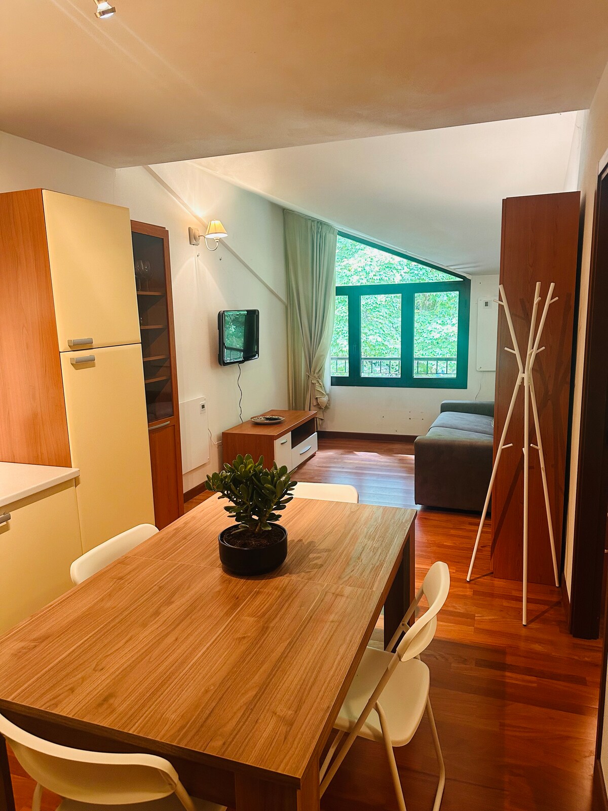 Udoban i profinjen stan u srcu zelenila, nedaleko od padina Abetonea! Svijetla i pažljivo namještena, ima prostrani dnevni boravak sa kaminom i TV-om od 50", kuhinju i trpezariju sa velikim stolom, tri spavaće sobe (jedna četvorostruka i dvije dvokrevetne), dva kupatila sa tuš kabinom, panoramsku terasu i privatnu baštu. Brza satelitska Wi-Fi veza. U blizini su barovi, restorani, namirnice i smještaji za iznajmljivanje skija/bicikala. Savršeno za opuštajući odmor ili sportove u svim godišnjim dobima!