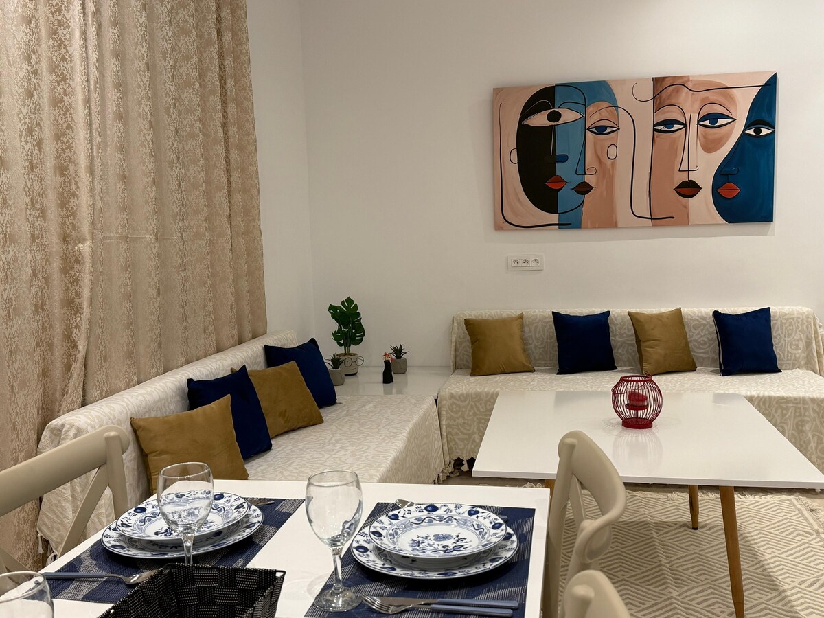 Opustite se u ovom mirnom i udobnom smeštaju, luksuzno opremljenom i sa skladnim dekorom koji obezbeđuje prijatan boravak. Stan se nalazi u mirnom rezidencijalnom dijelu, uključuje dnevni boravak sa sofom na razvlačenje , spavaću sobu sa balkonom i dobro opremljenu čajnu kuhinju. 📍Smješten u blizini svih sadržaja: Carrefour, restorani, kafići, saloni, teretana, apoteka... Aerodrom Tunis Kartaž udaljen je 5 minuta.