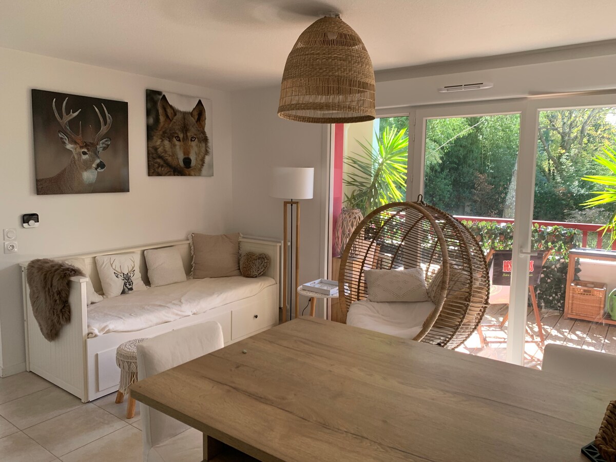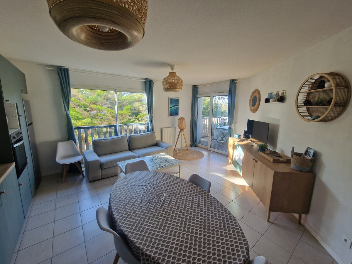 Smješten u blizini jezera Hossegor (500 m) i plaža Seignosse (700 od plaže Estagnot), ovaj studio stan je savršen za dvije osobe. S balkona se pruža lep pogled na borove šume. 5 minuta hoda od prodavnica (pekara, restorani, supermarket...). Njegova konfiguracija: mala soba (krevet 140 cm, )svijetla dnevna soba (1 sofa) i balkon sa stolom, opremljena kuhinja (nespreso mašina, frižider, električna ploča za kuvanje, mikrotalas, ...), tuš kabina sa WC-om.