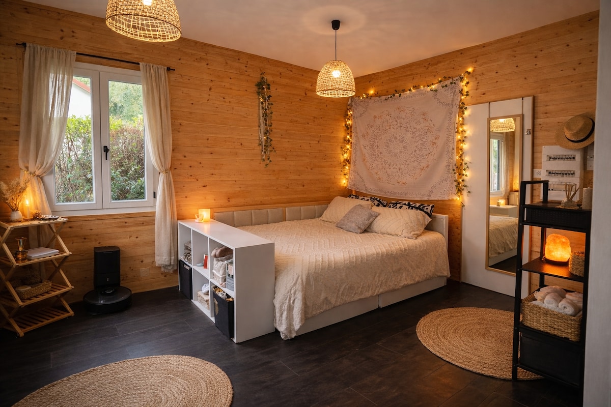 Treba vam pauza za dvoje? Idite u Burgundiju 1h30 iz Pariza. Naša brvnara sa privatnim spa centrom omogućiće vam da napunite baterije na selu. Nekoliko kilometara od Tusija i njegove pijace, ali i nedaleko od Oksera, srednjovjekovnog gradilišta Guedelon ili dvorca St-Fargeau, to je savršeno mjesto za odmor za vikend ili više. Dolazak je nakon 16:00. Romantični dekor na zahtjev u zamjenu za besplatnu donaciju za našu organizaciju.