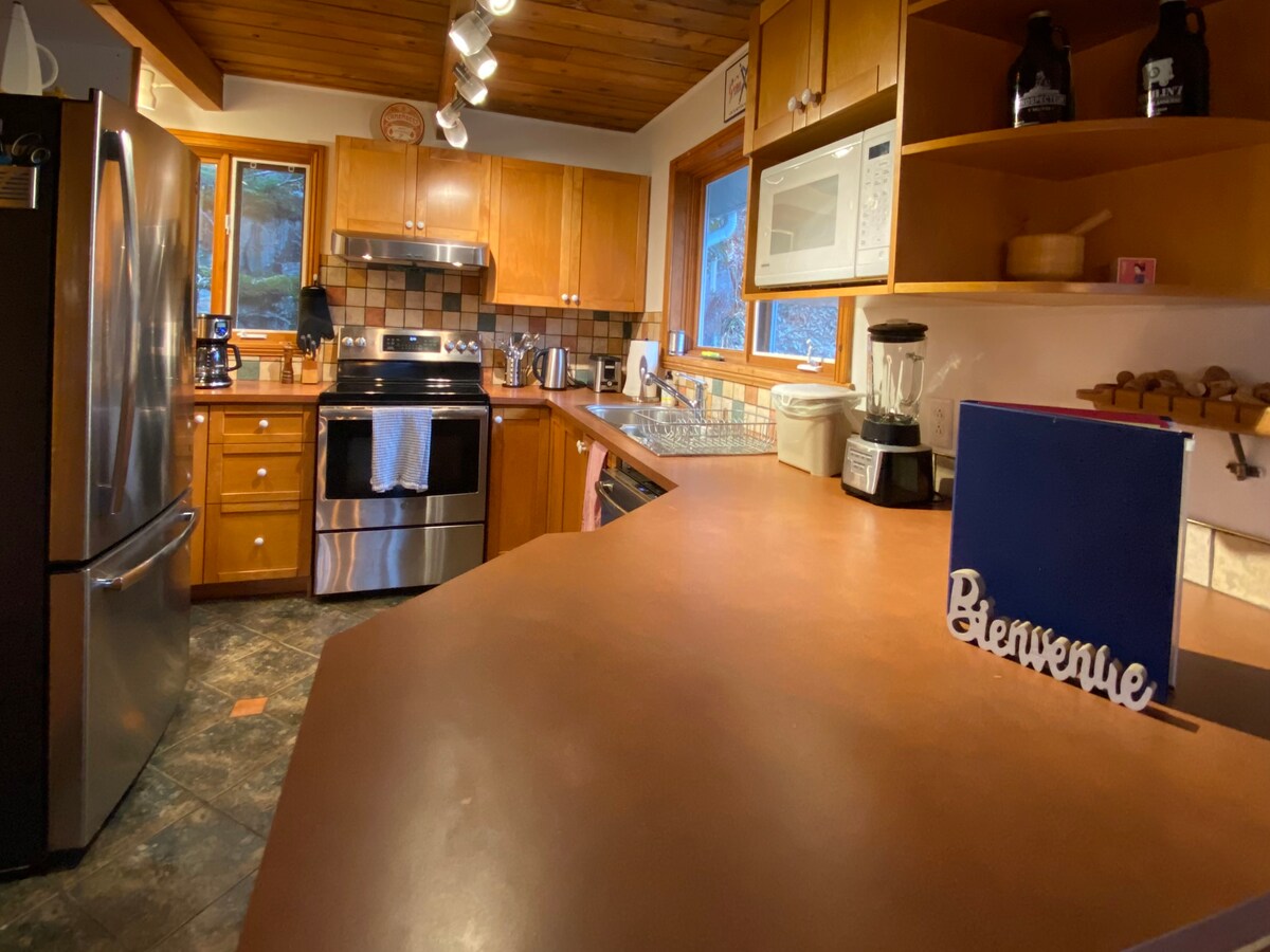 - Résidence de Tourisme: CITQ #281061 -Très confortable/Doté d'un aménagement de qualité/ Plusieurs services + commodités -5 Étoiles: Développement Tourisme Durable -Statut Super Host: Expériences Extraordinaires pour les Voyageurs -Extra Guest: Adulte 50$can// 2 et 17 ans - : 40$can par nuitée À 20 mètres d'un petit lac nourri de sources. Non-motorisé/eau qualité A. Résidence de 4000 pc, concept mitoyenneté, est située à 500 m d'altitude dans le Massif du Mont Kaaikop.