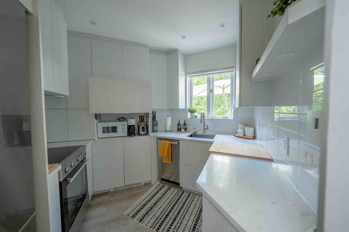 Potpuno nova moderna brvnara koja je krajnji bijeg od grada, gdje je priroda na vašim stopama. Mjesto gdje se možete opustiti i opustiti kako biste stvorili svoje raspoloženje. Uživajte u udobnoj dnevnoj sobi, uživajte u filmskim večerima pored pametnog televizora od 85inča. ٍOpustite se u udobnoj spavaćoj sobi sa spojenim kupatilom modernog dizajna. Kupatilo je otvorenog rasporeda bez vrata, ali tuš-kabina i WC šolja su van vidokruga radi vaše privatnosti. Kuvanje obroka je zabavno u dobro opremljenoj kuhinji. Imamo i punjač za električna vozila!