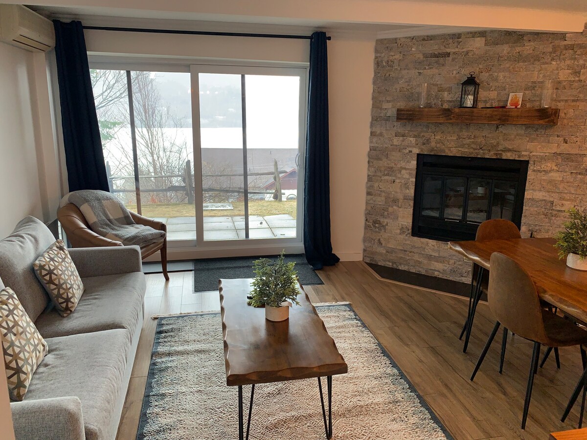 Dođite i uživajte u našem modernom stanu sa zadivljujućim pogledom na jezero i Mont-Tremblant. Možete uživati u lokaciji našeg stana tokom cijele godine jer ste na manje od pet minuta od poznatog pješačkog sela Tremblant, skijaških staza i svega što Tremblant nudi. Možete i da se opustite, zapalite vatru i uživate u očaravajućem pogledu koji ovaj stan nudi. • Potpuno opremljena kuhinja • Savršeno za skijanje , bicikl, golf, planinarski odmor! • Aparat za kafu Keurig • Smart TV • Brzi Wi-Fi