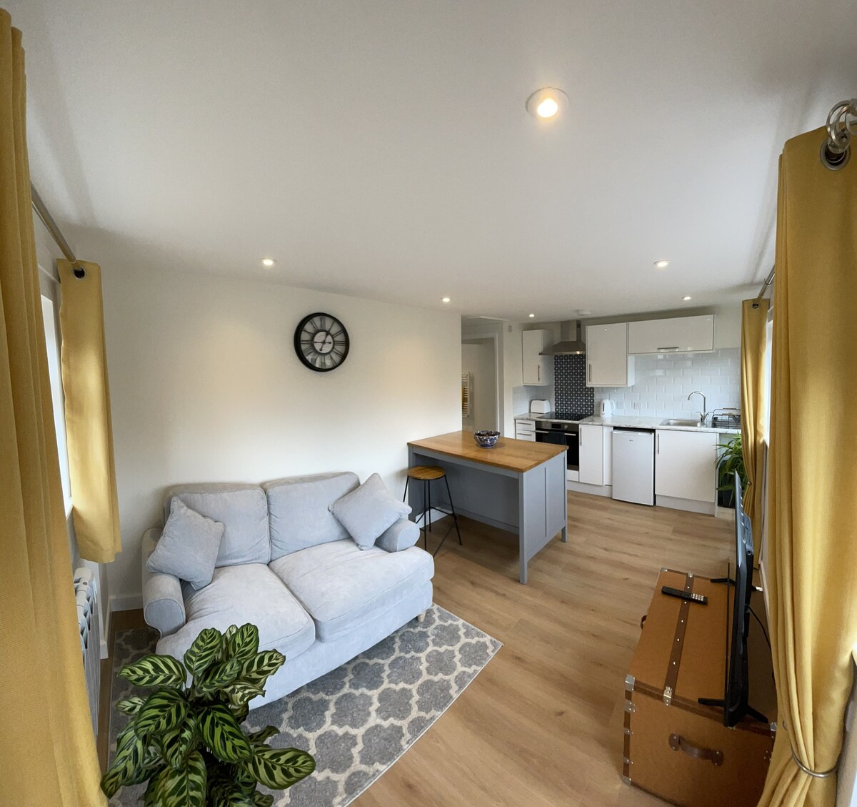 Ova mala seoska kuća je moderna, čista i svetla, sa kuhinjom otvorenog plana na desnoj strani dok ulazite na vrata i sedite izvan sa francuskim vratima koja vode u baštu. Spavaća soba je mala, ali udobna sa dovoljno prostora za odeću u ormaru sa lastišem i policama. Kupatilo u apartmanu ima kadu sa tušem, WC-om, umivaonikom i čistim belim peškirima. Okružen prirodom, drvećem, grmljem i uz zvuk ptica da se probudite uz ovo mesto za opuštanje.