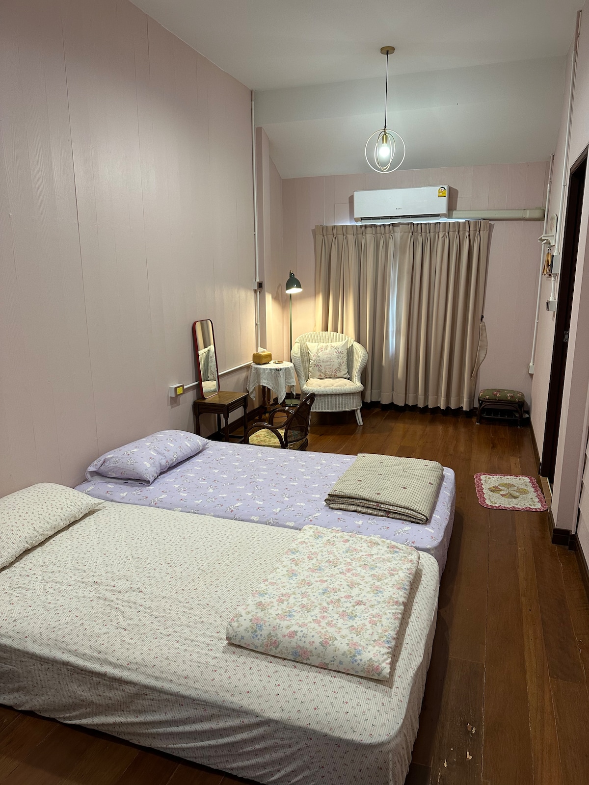 Baštenska kuća sa prelepom dekoracijom i kompletnim uređajima kao što su klima-uređaj, frižider,topli tuš,TV i mikrotalasna. Ova kuća je pogodna za porodicu, grupu prijatelja, strance koji vole prirodu i žele da pobegnu od užurbanog životnog stila. Područje kuće je okruženo tropskim voćnim baštama kao što su mangostin, rambutan, durian itd. Takođe možete da posetite znamenitost istorije Šantaburi, vodopad Philu i plažu koja je udaljena 10 minuta vožnje od kuće. Slobodno mi se obratite za više informacija.