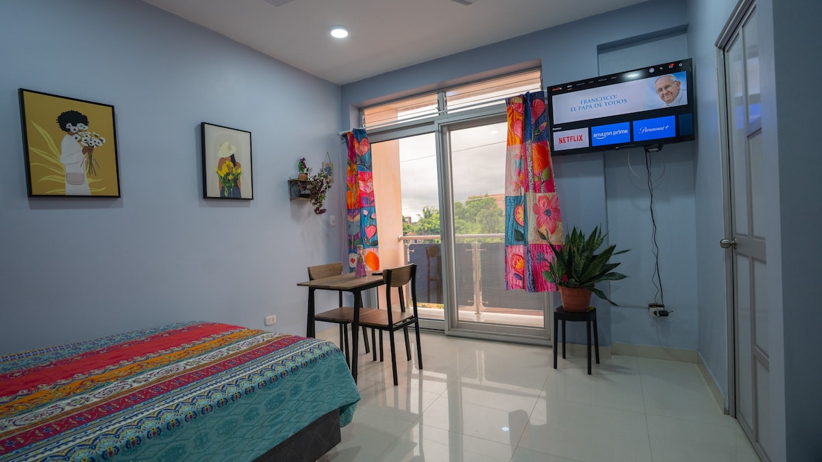 Uživajte u ovoj udobnoj privatnoj sobi sa nezavisnim ulazom i u blizini aerodroma. Odlična lokacija u području sa pristupom prevozu, restoranima, prodavnicama i zabavnim sadržajima. Opremljen: ✔ Udoban dvosjed ✔ Smart TV, kablovska. ✓ Internet ✓ Mini frižider ✔ Radni sto ✔ Privatno kupatilo ✔ Peškiri, sapun i šampon ✔ Pegla i ormar ✔ Motocikl ✔ Privatan balkon ✔ Plafonski ventilator Ne dijeli se s drugim djelovima objekta, osim s terasom.