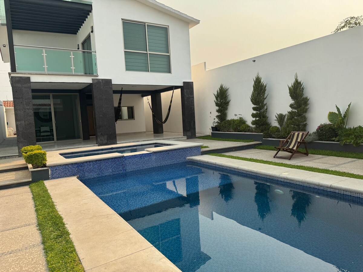 Svideće vam se naša kuća, možete da uživate u nekim danima opuštanja i zabave sa voljenom osobom, porodicom ili grupom prijatelja. Privatni bazen i parking. Udaljen 15 minuta od vodenog parka El Rollo, Tekskitengo i 25 minuta do Jardines de México. Boravite u kući i uživajte pored bazena i posmatrajte boje zalaska i izlaska sunca. Otkrijte zvukove različitih ptica Morelosa dok se budite u ovoj prelepoj državi Meksiku