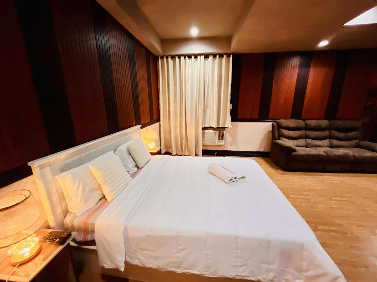 Ova soba može udobno da primi 2 osobe sa svoja dva kreveta. Njegovi sadržaji uključuju Wi-Fi, peškir, šampon i sapun i besplatno korišćenje fitnes teretane (na zahtev). Ova privatna soba u zgradi, samo 15 minuta udaljena od aerodroma preko Skajveja i u blizini tržnih centara i muzeja Ajala. Nalazi se ispred Nacionalnog svetišta crkve Svetog srca i ima mnogo obližnjih mesta za večeru i kupovinu. Pristup je moguć glavnim ulicama; Chino Roces i Ajala Avenue.